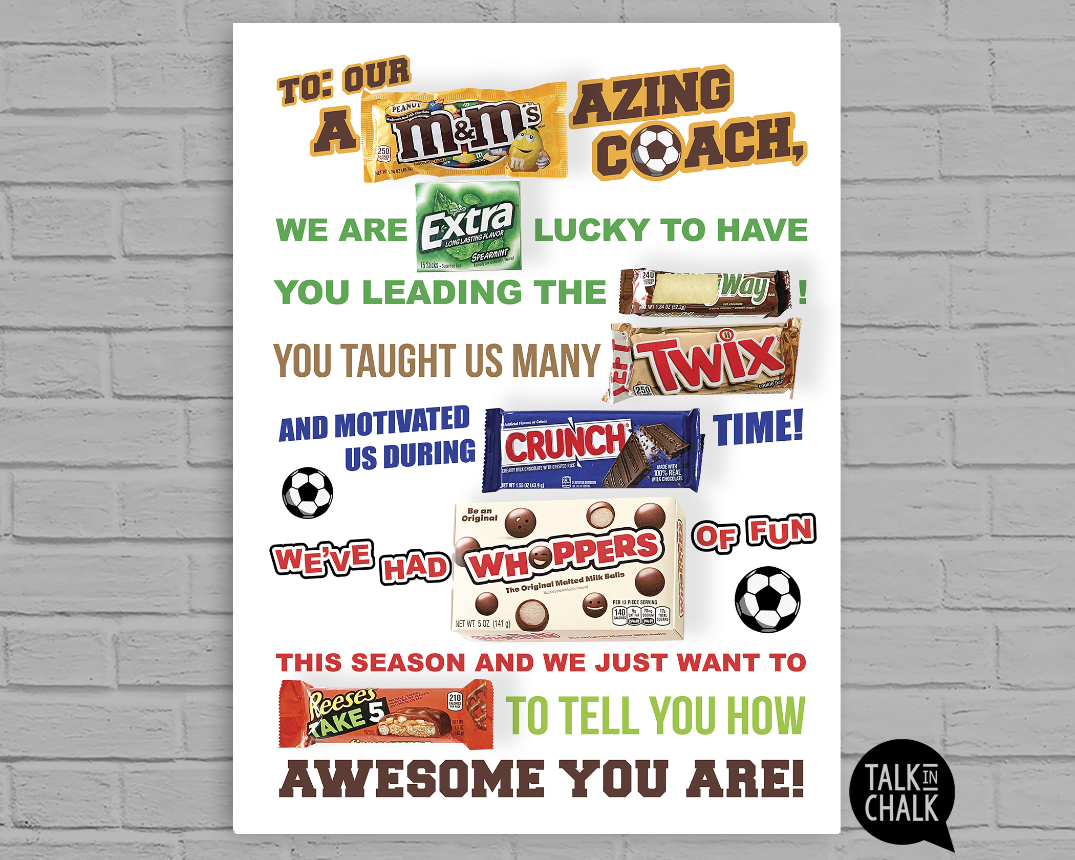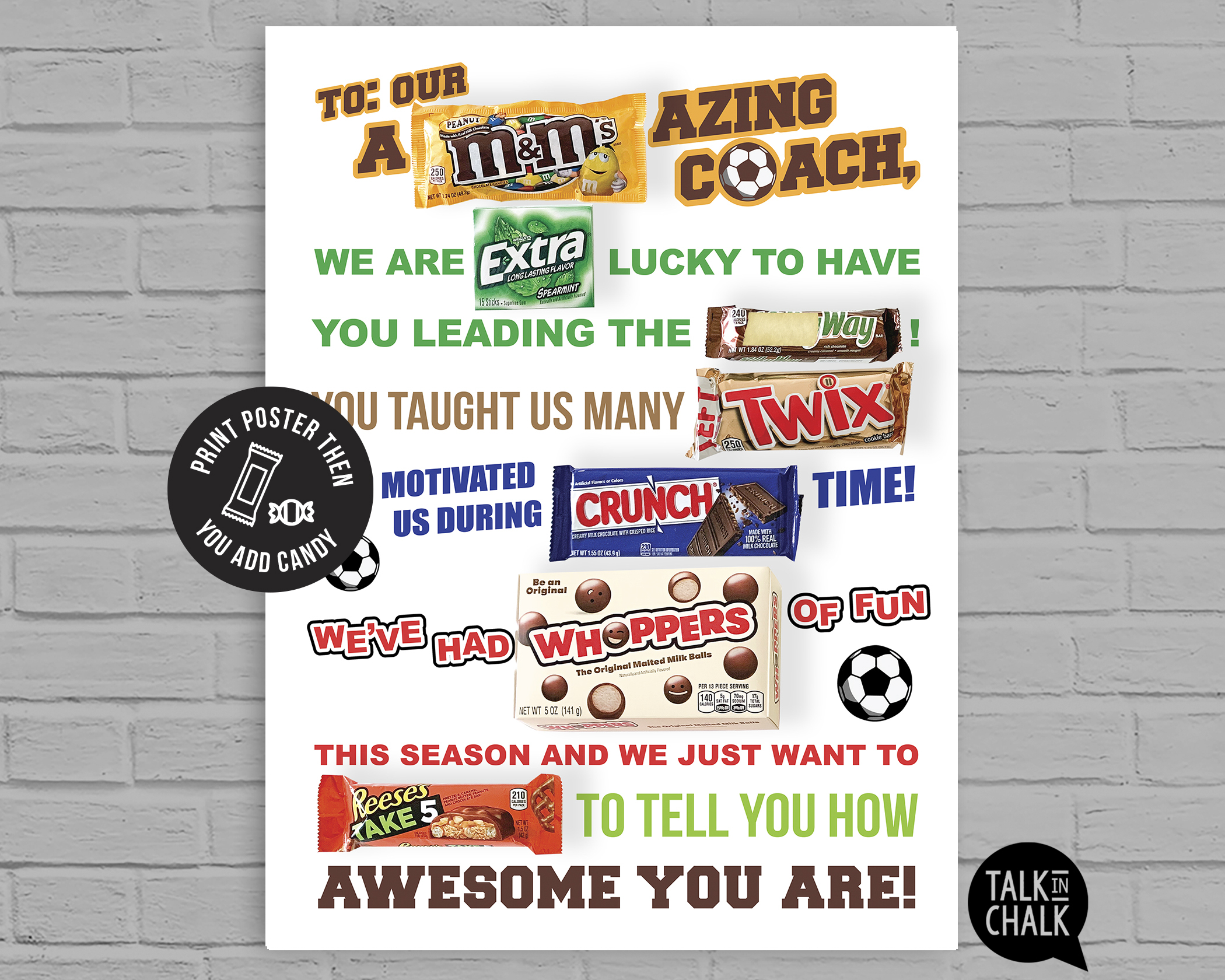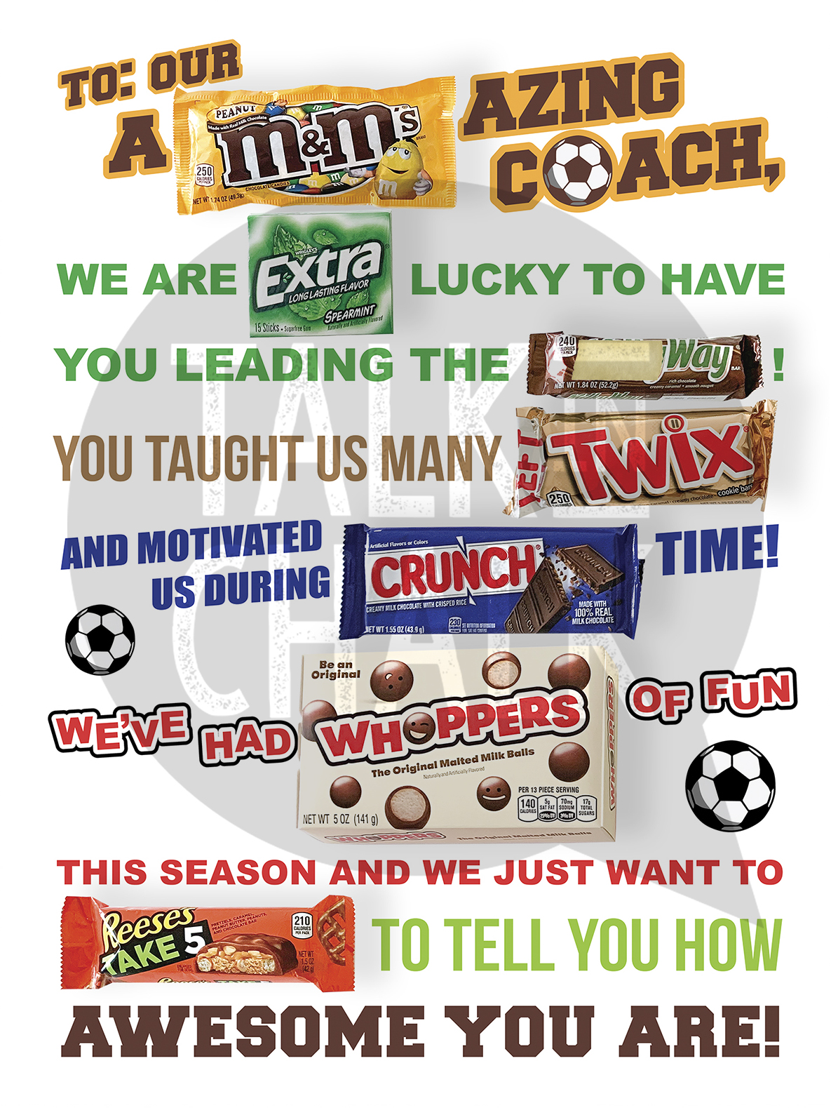 Soccer Coach Candy Appreciation Poster – Printable Sports Coach Gift | End of Season Candy Gram Sign | Thank You Gift for Soccer Coach