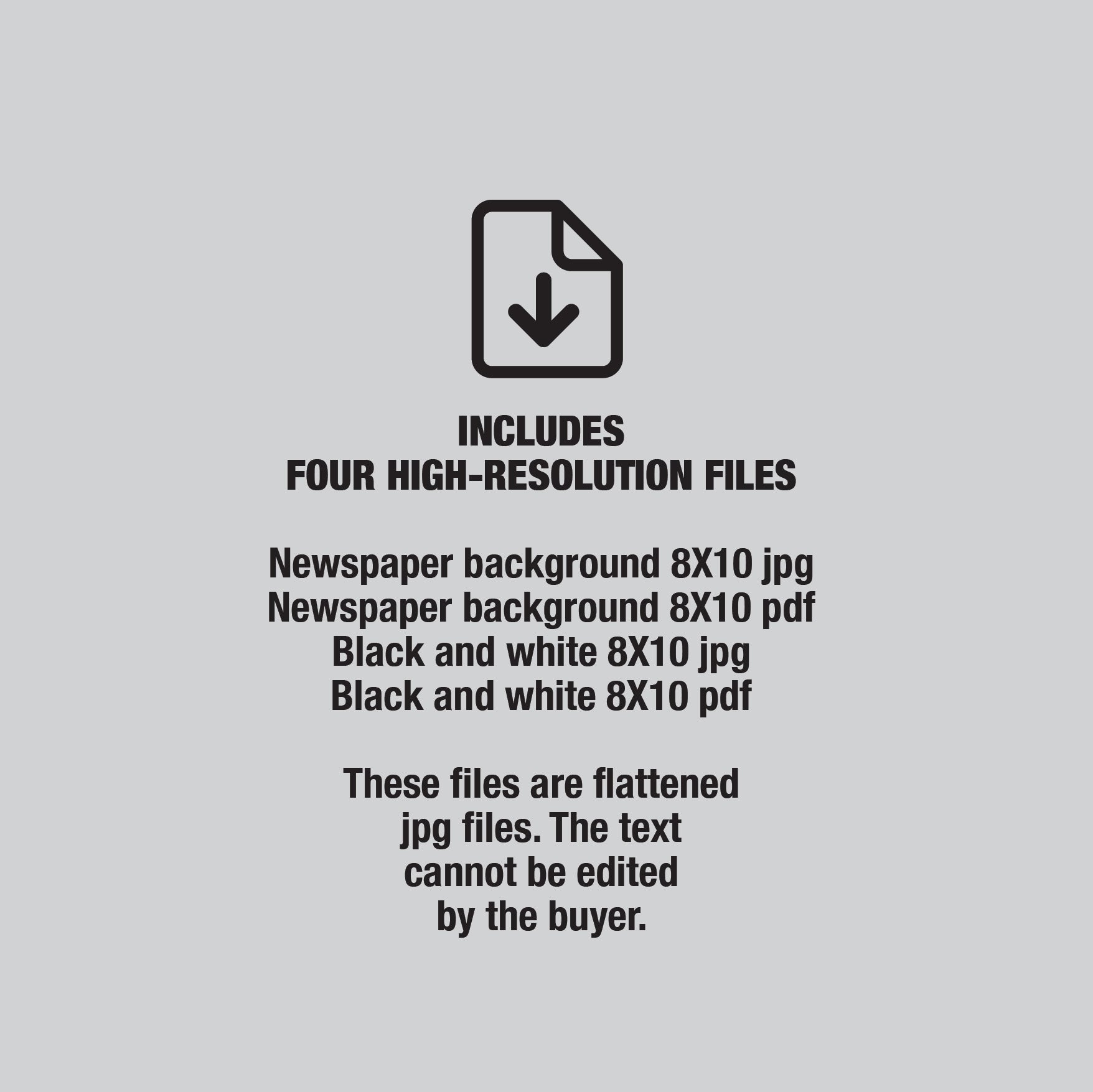 - Includes 4 files, a newspaper version and a black and white version - 8x10 jpgs and pdfs