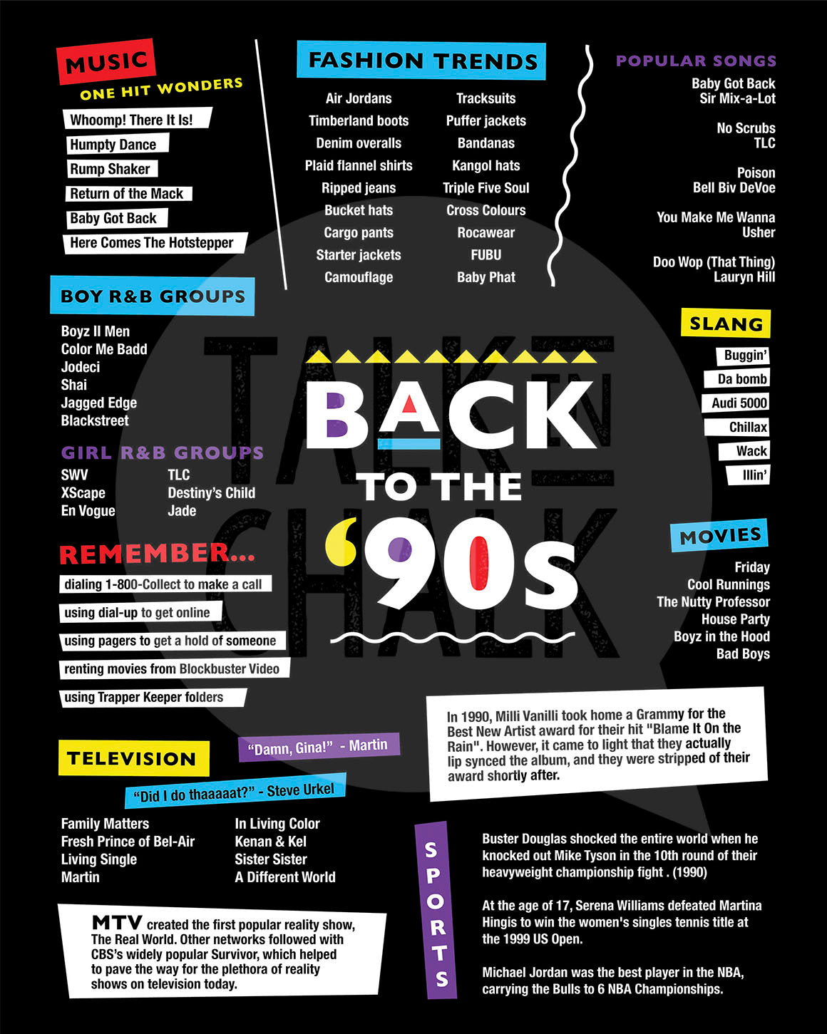 Take a trip down memory lane with this vibrant 90s Hip-Hop Pop Culture Printable, inspired by the Martin tv show and packed with fun facts, music, fashion trends, slang, TV shows, and unforgettable moments from the golden era of hip-hop and R&B!