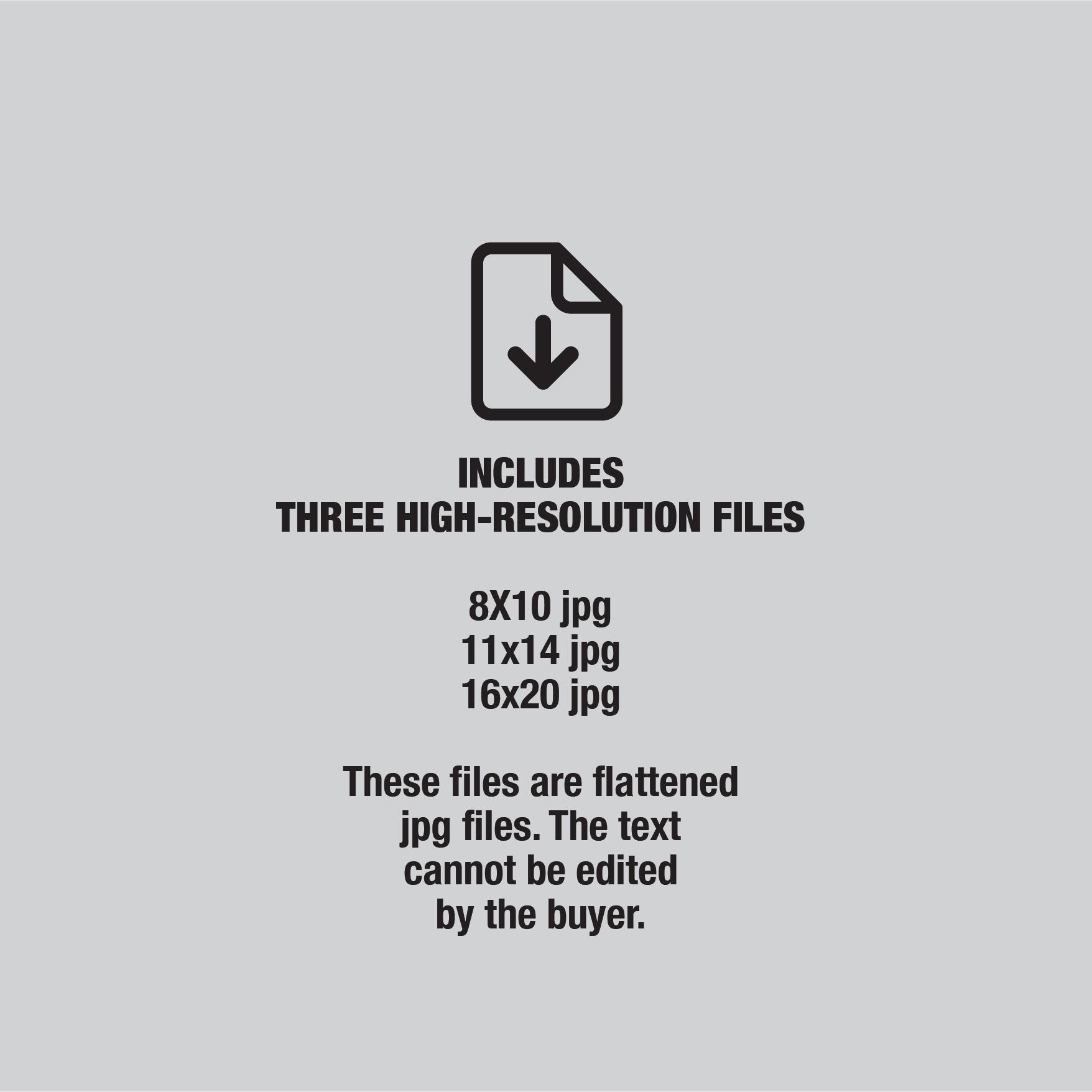 Instant Download – Print & Frame with Ease! Includes three high-quality JPG files (8x10, 11x14, and 16x20) for easy printing at home or through a professional print shop.