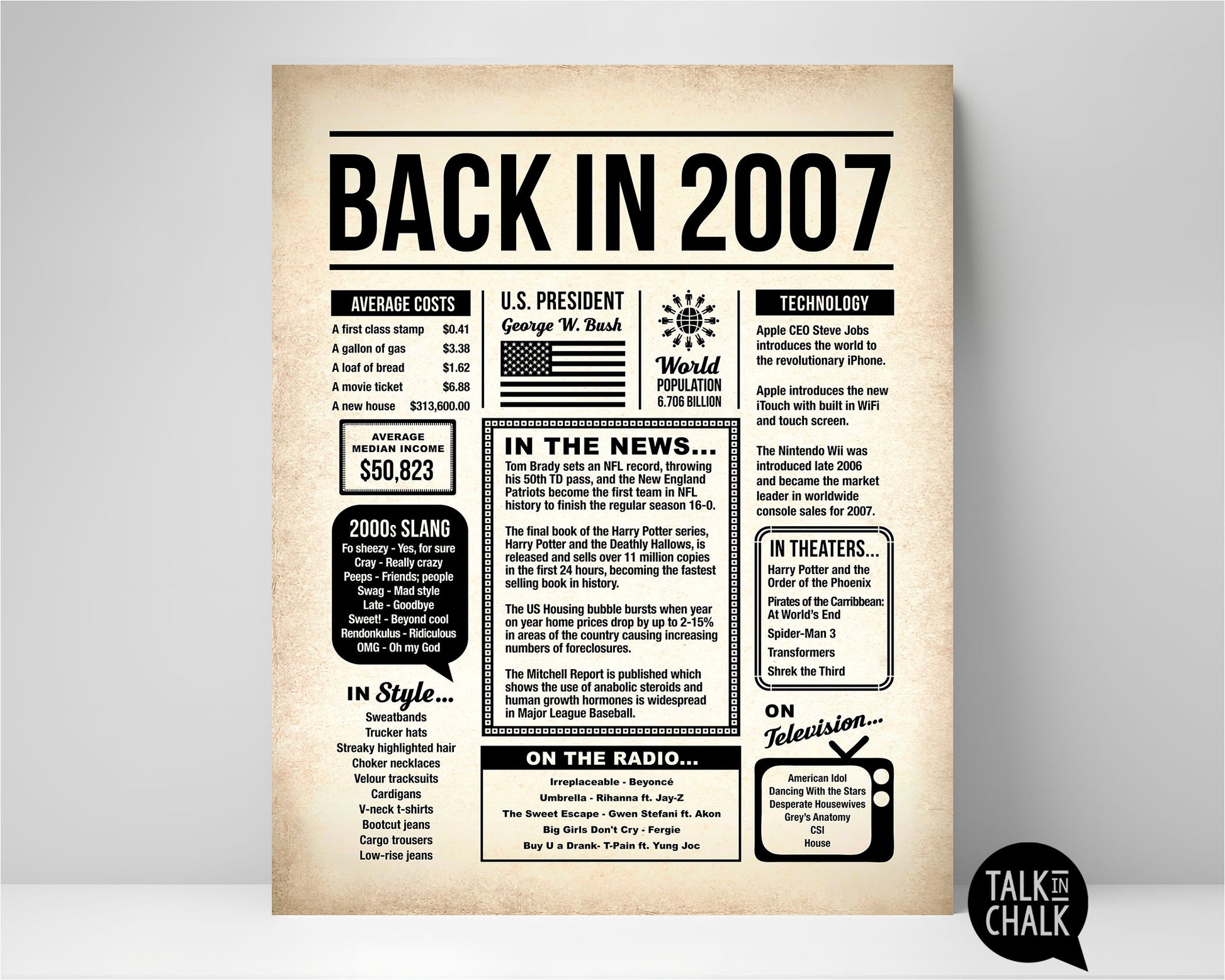 Back in 2007 Printable Newspaper Poster for Birthday, Anniversary, Reunion