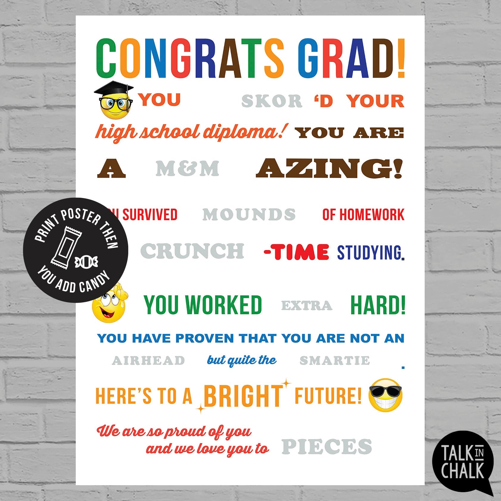 Congrats Grad Candygram Printable - 18x24 Poster Size