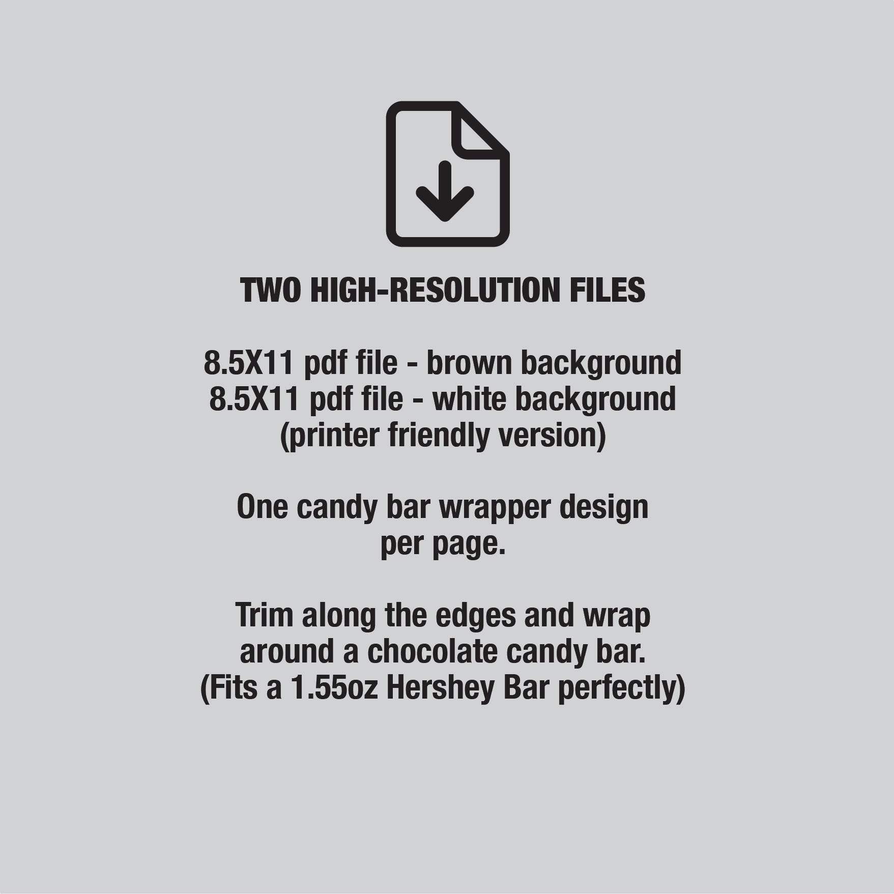 - Fits perfectly wrapped around a 1.55oz Hershey Chocolate bar.