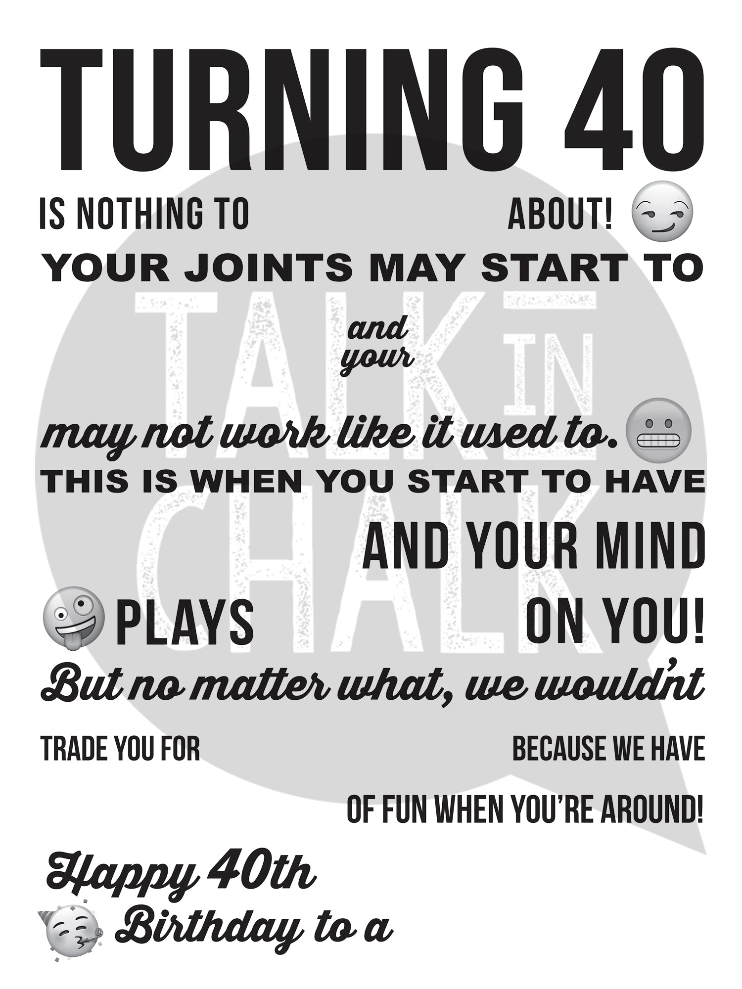 Funny 40th Birthday Candy Poster | Turning 40 Candygram Printable | Born in 1986 Gag Gift | Instant Download | TalkInChalk Printable