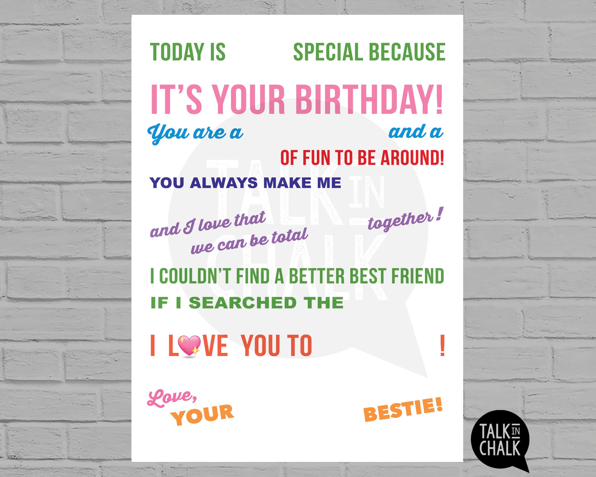 Happy Birthday Best Friend Candy Gram PRINTABLE Poster, Fun Birthday Gift Idea for Bestie
