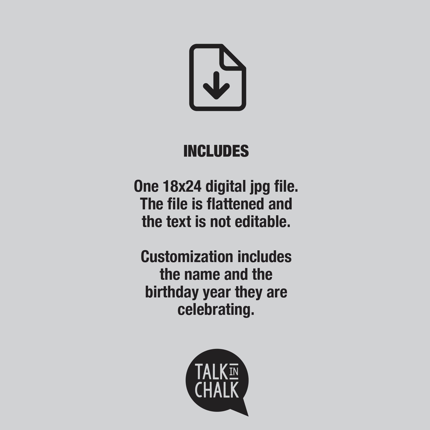 - A custom, made-to-order digital file with the recipient's name and age