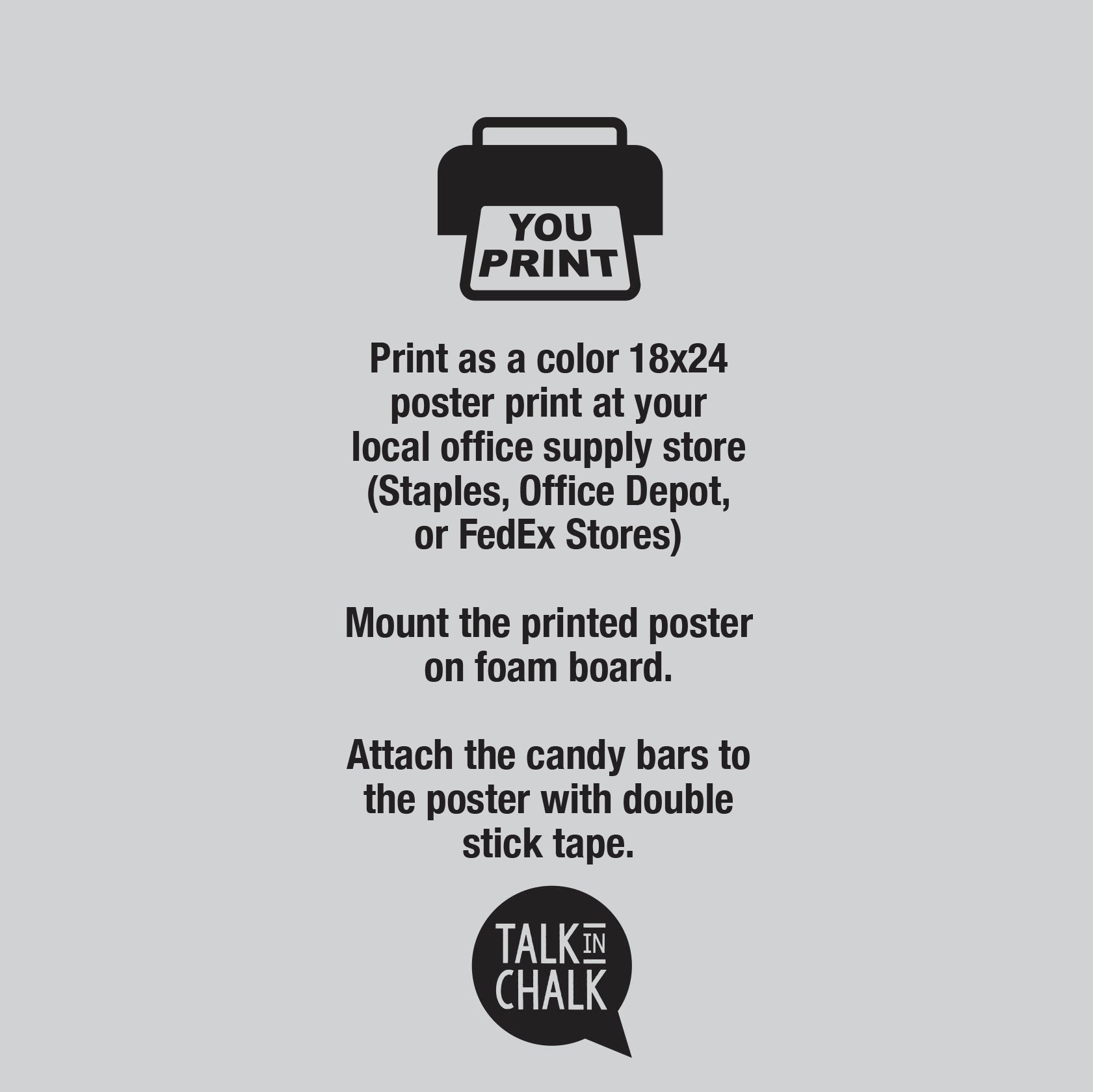 - Print at your local office supply store as an 18x24 color poser print (Staples, Office Depot, or FedEx Store)