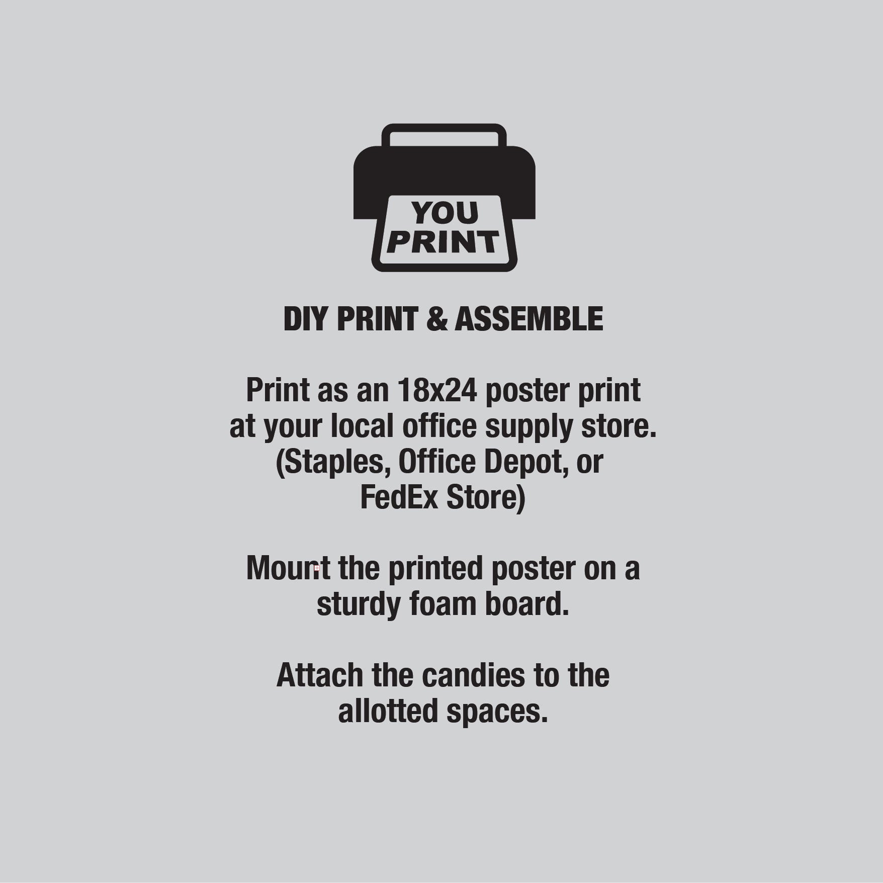 - Print at your local office supply store as an 18x24 color poster print (Staples, Office Depot, or FedEx Store)