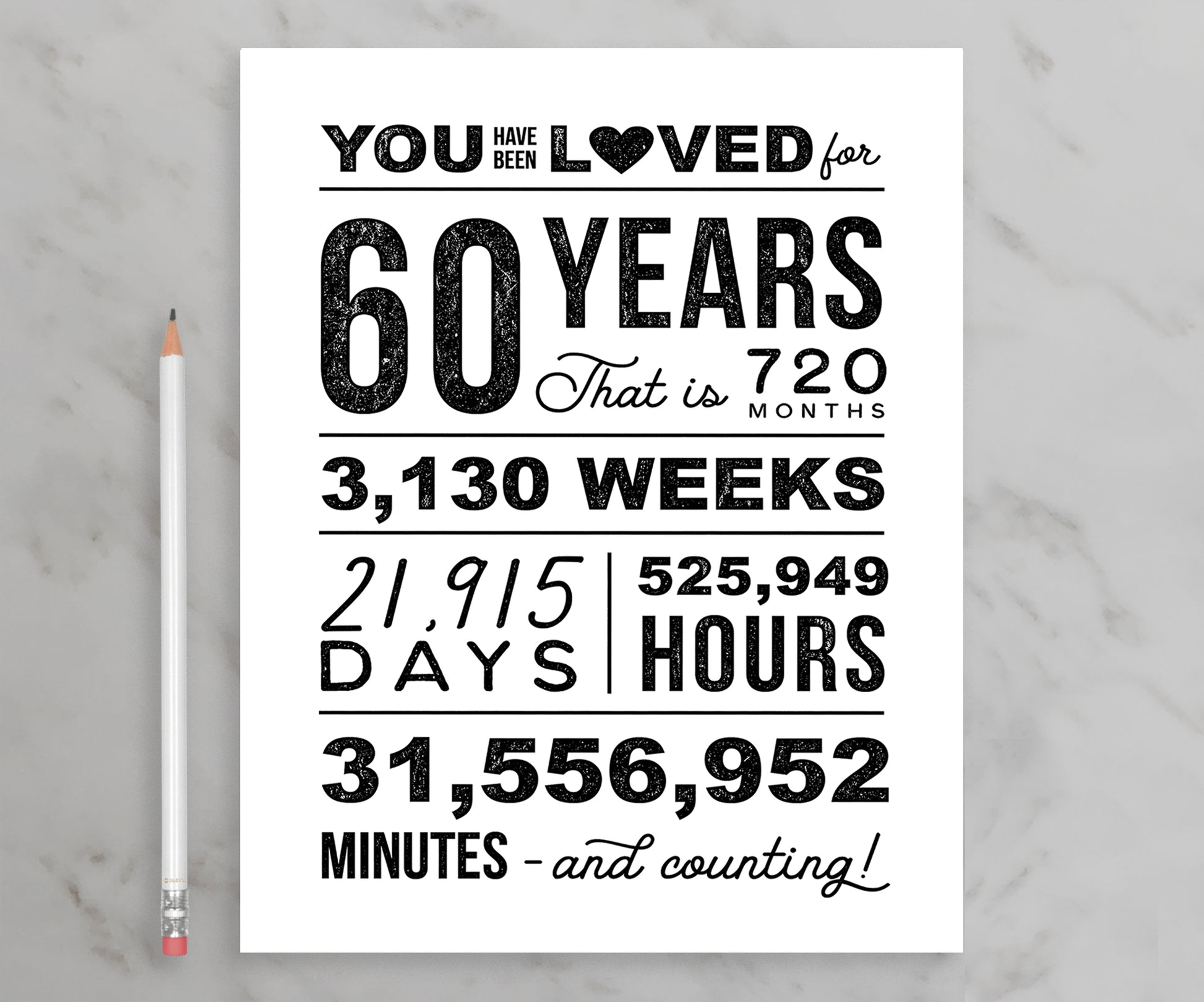 You Have Been Loved for 60 Years – Printable Birthday Poster (Black & White)