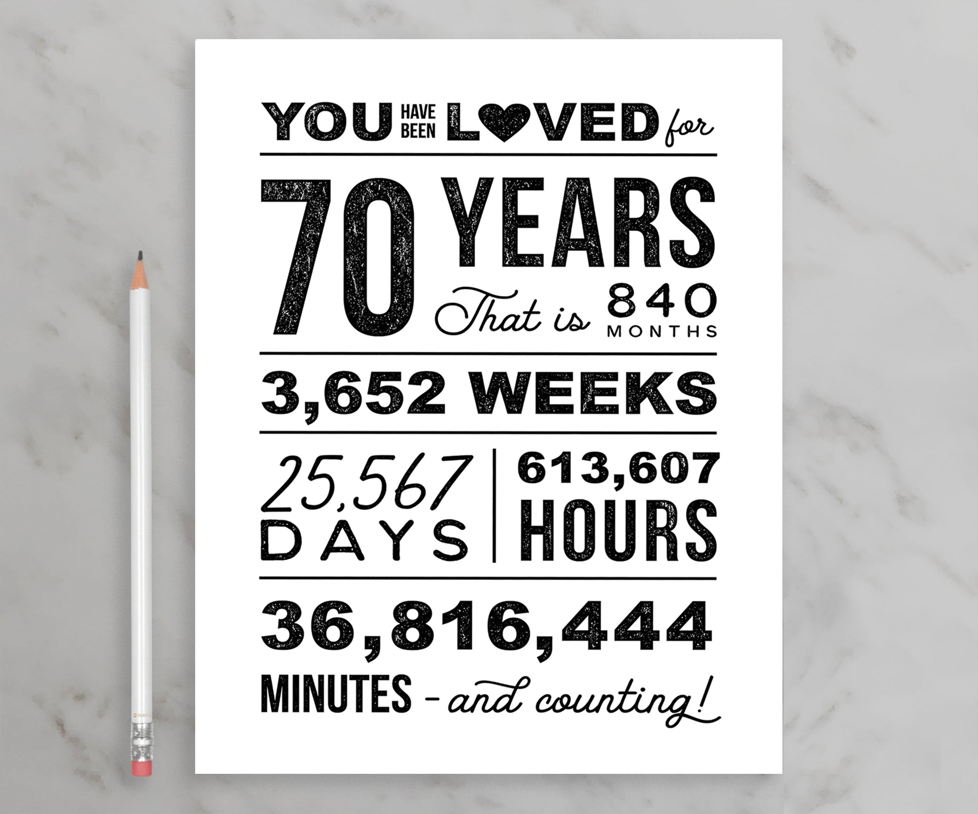 You Have Been Loved for 70 Years – Printable Birthday Poster (Black & White)