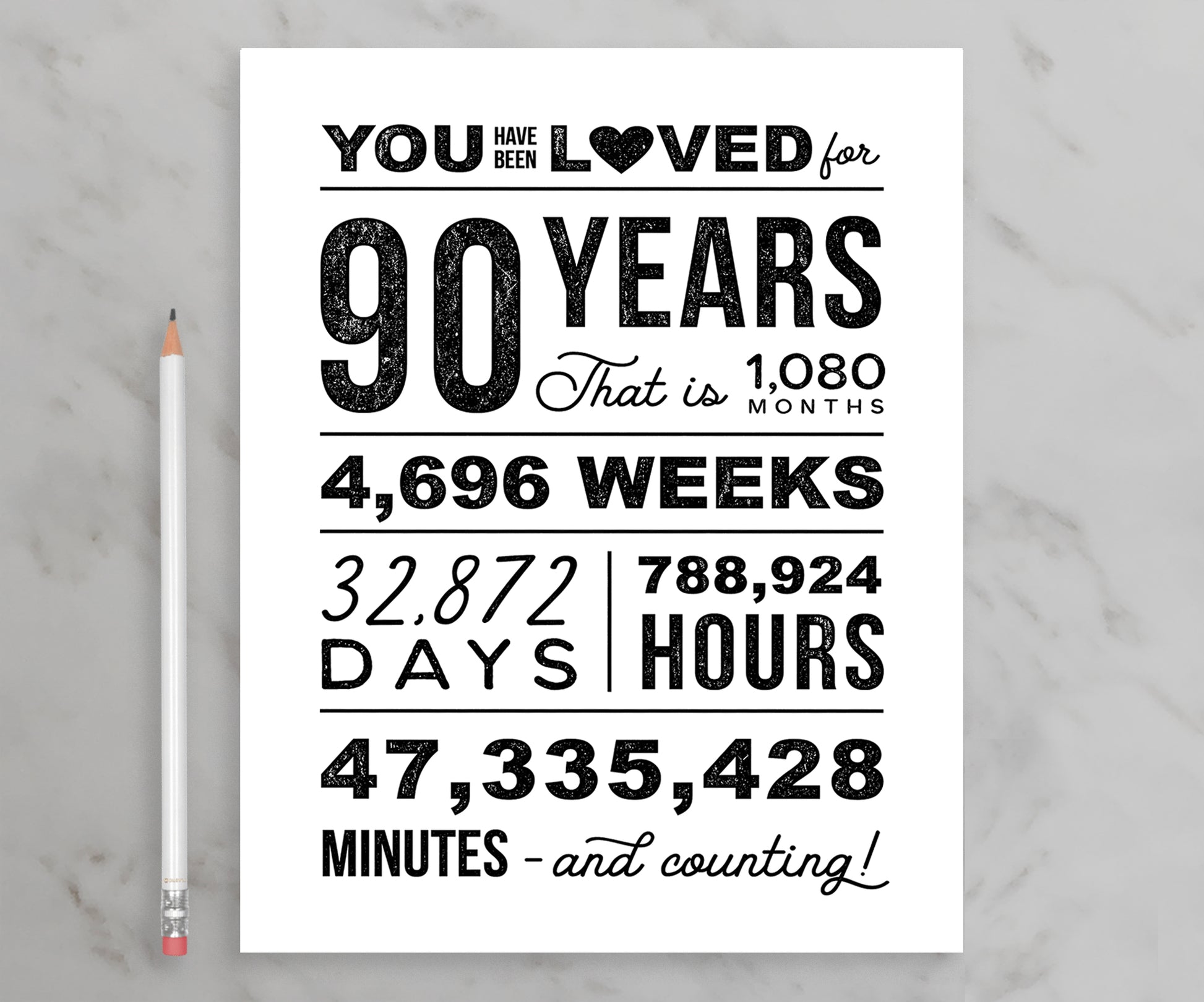 You Have Been Loved for 90 Years – Printable Birthday Poster (Black & White)